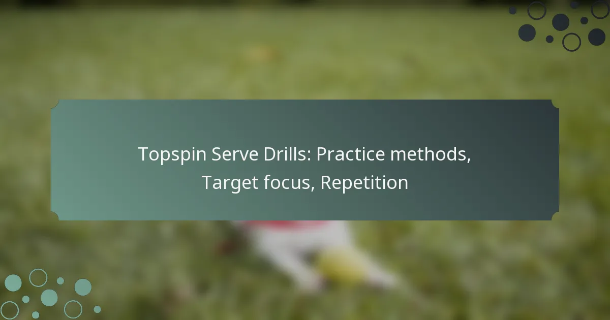 Mastering the topspin serve requires dedicated practice methods that incorporate solo drills, partner exercises, and precise footwork. By focusing on specific target areas during practice, players can enhance their accuracy and adapt their serves to counter opponents effectively. Consistent repetition is essential for developing muscle memory, allowing players to refine their technique and improve their overall performance on the court.